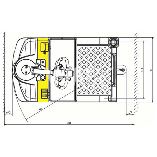 产品编号 WNK1459 驱动方式 电动 驾驶方式 站驾 额定牵引重量(S2=60min) Q(kg) 4500 额定牵引力(S2=60min) kg 110 挂钩中心离地高度 H10(mm) 128 最大牵引力(5min) kg 300 轮距 y(mm) 1054 自重(带电瓶) kg 1000 轴负载,满载时前/后轴 kg 580/1280 轴负载,空载时前/后轴 kg 420/926 轮子 前轮(聚氨酯)后轮(橡胶) 轮子尺寸,前轮 Φ250x80 轮子尺寸,后轮 Φ200x50 附加轮(尺寸) Φ127x57 轮,前后数量(x=驱动轮) 1x+2/2 后轮轮距 b11(mm) 740 操作手柄在驱动位置的最小/最大高度 H14(mm) 1070/1370 总体长度 L1(mm_ 1450 车体宽度 b1(mm) 830 轴距中心离地间隙 M2(mm) 55 通道宽度 Ast(mm) 1670 转弯半径 Wa(mm) 1235 行驶速度,满载/空载 % 9/14 行车制动 再生制动 驾驶员耳边噪音等级 dB(A) 70