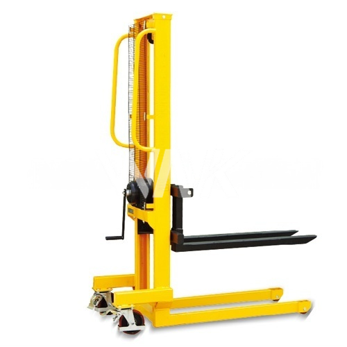 通过手摇杆转动实现上升下降功能,操作较液压堆高车相对省力